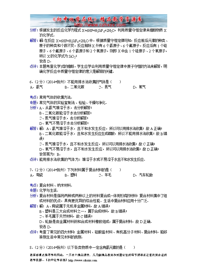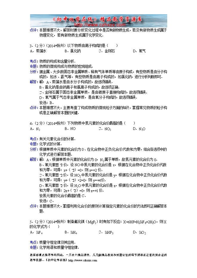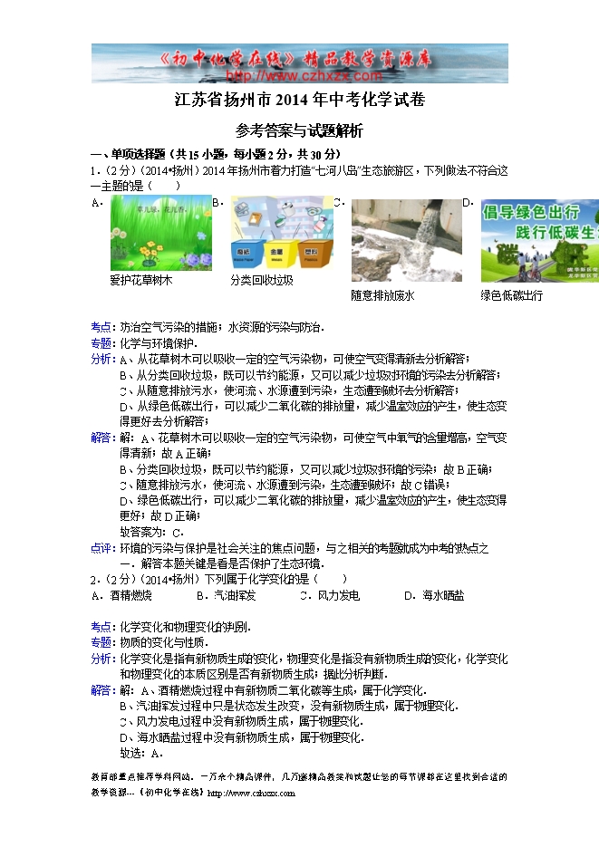 2014年江苏省扬州市中考化学试题及答案(word版,含解析)