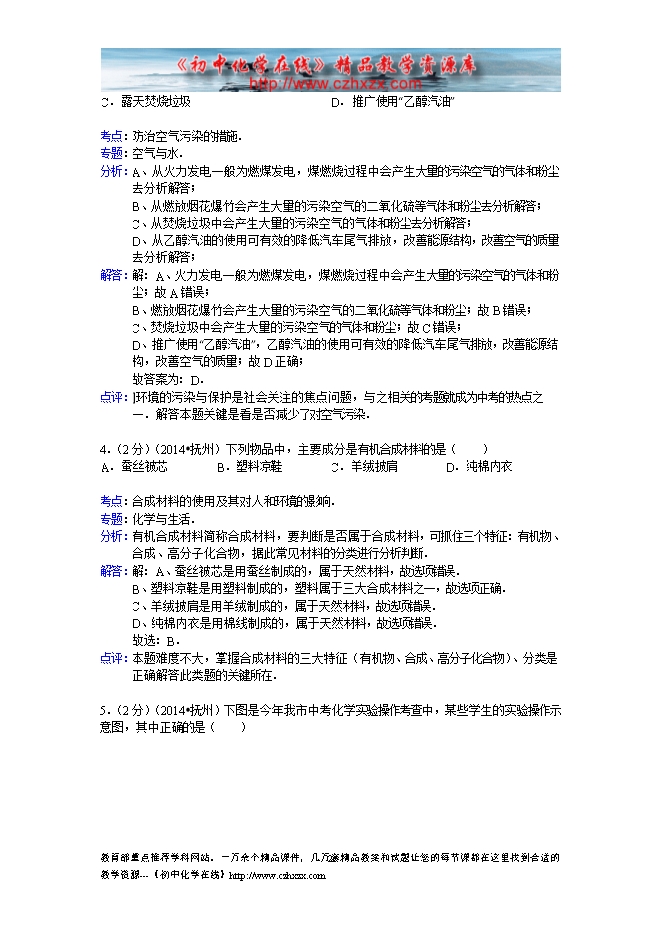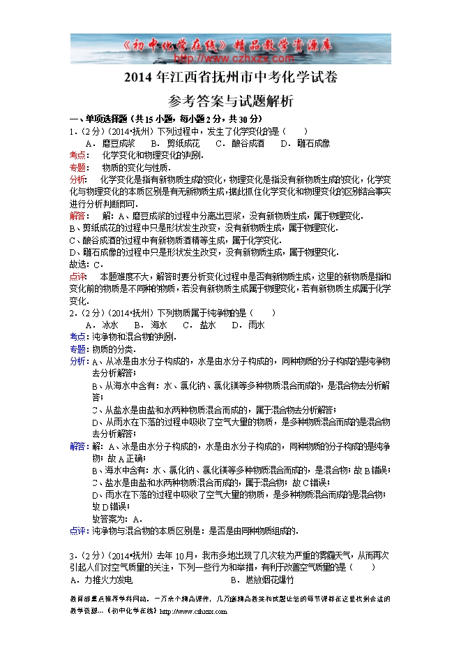 2014年江西省抚州市中考化学试题及答案(word版,含解析)