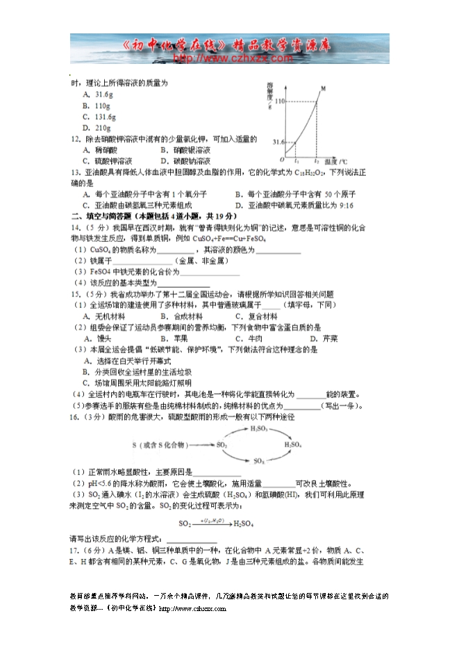 所属专辑: 《2014年各省市中考化学真题》专辑