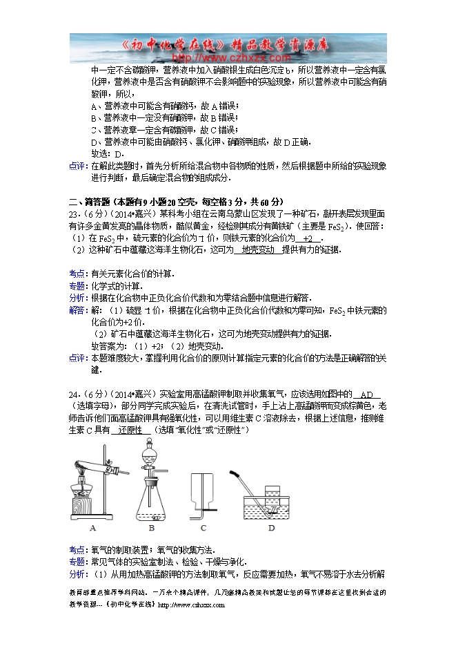 所属专辑: 《2014年各省市中考化学真题》专辑