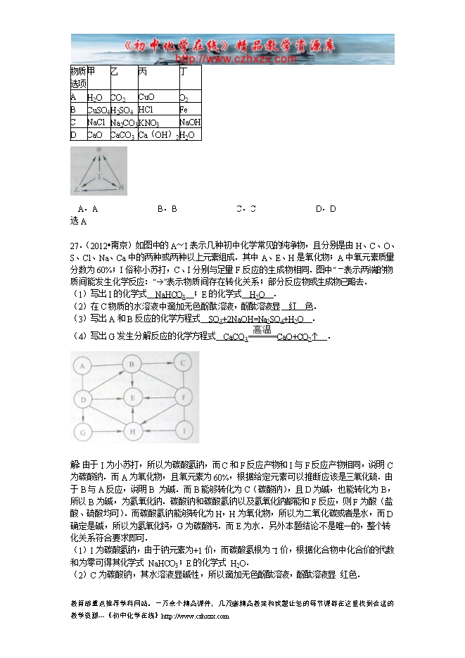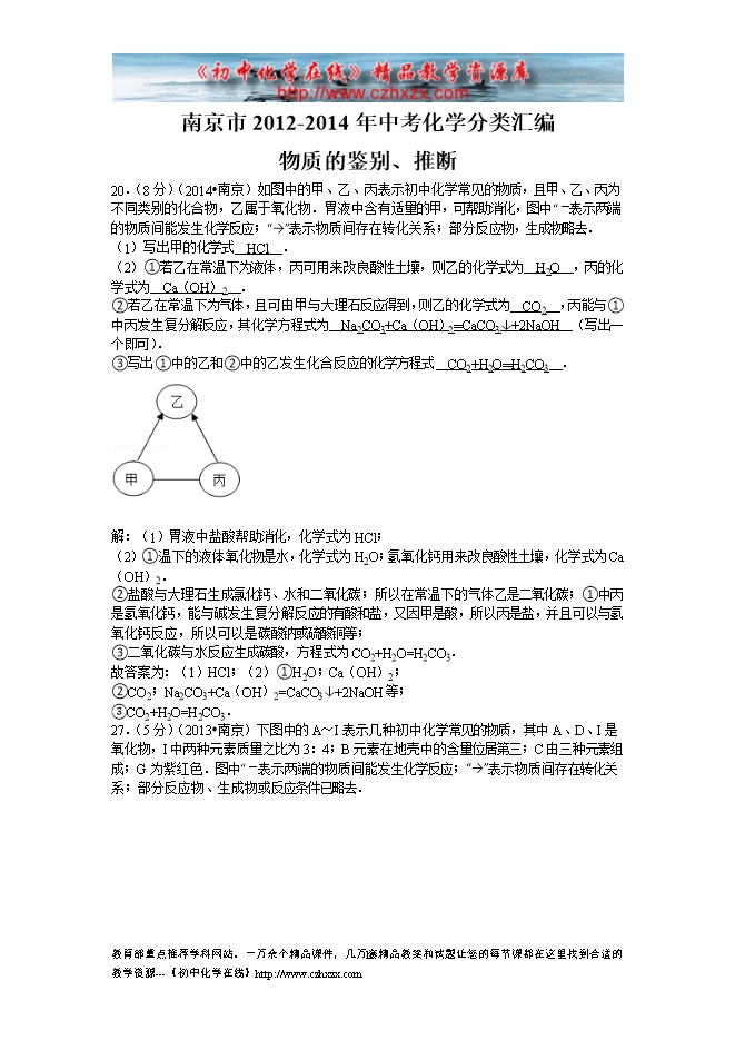 南京市2012-2014年中考化学分类汇编:4物质的鉴别和推断