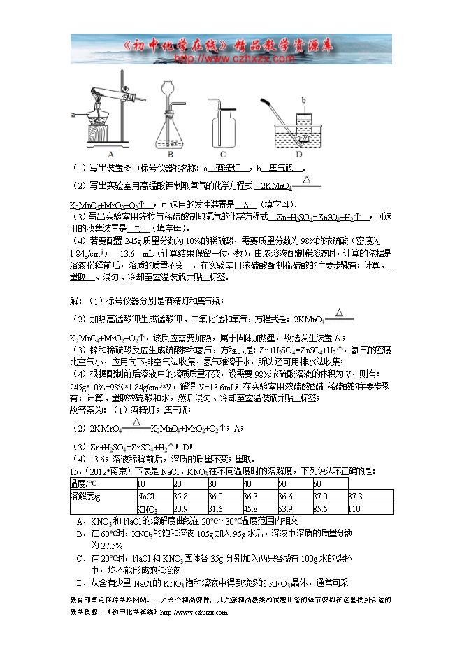 所属专辑: 《南京市2012-2014年中考化学试题分类汇编》专辑