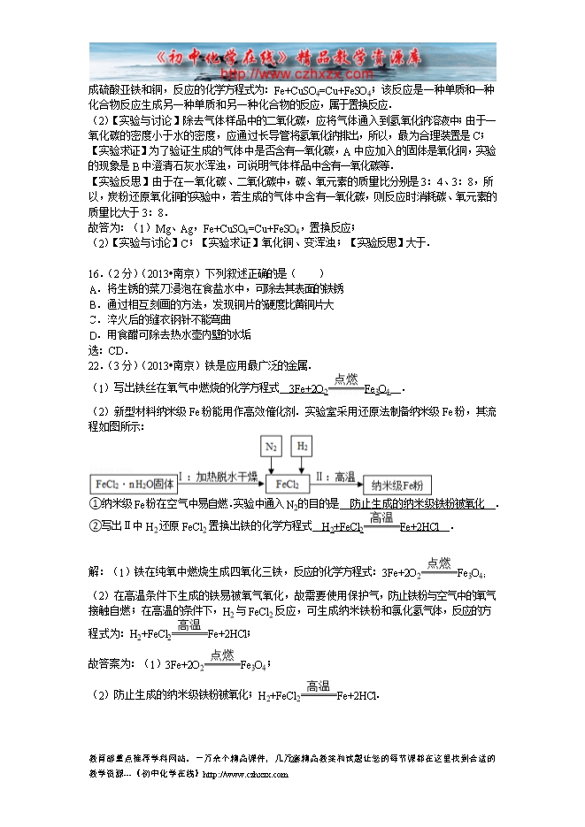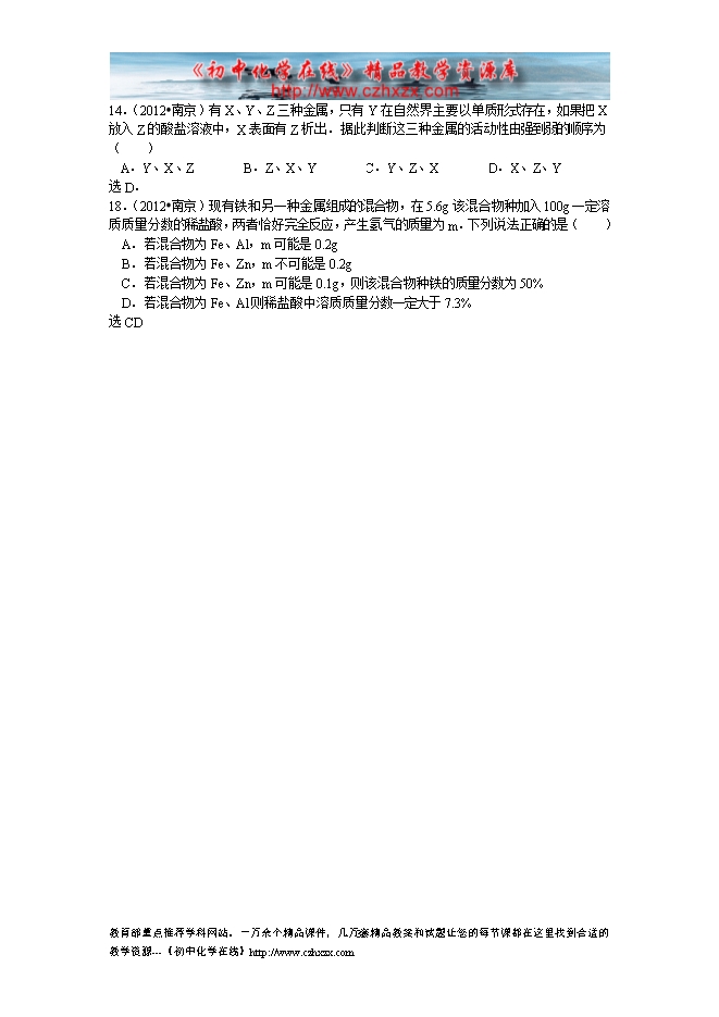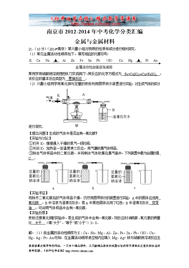 南京市2012-2014年中考化学分类汇编:9金属与金属材料