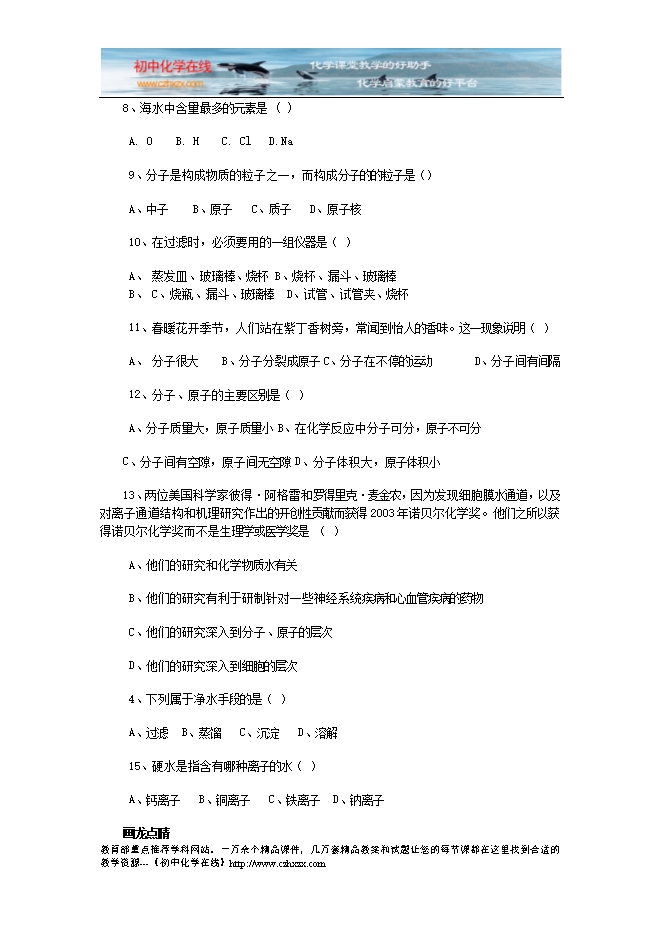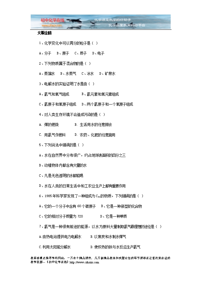 - 下一份试卷:人教版《第三单元 物质构成的奥秘》检测题
