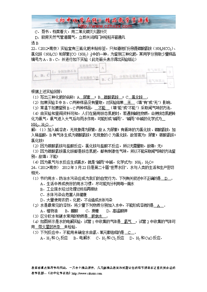 所属专辑: 《南京市2012-2014年中考化学试题分类汇编》专辑