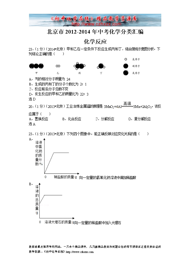 北京市2012-2014年中考化学分类汇编:7化学反应