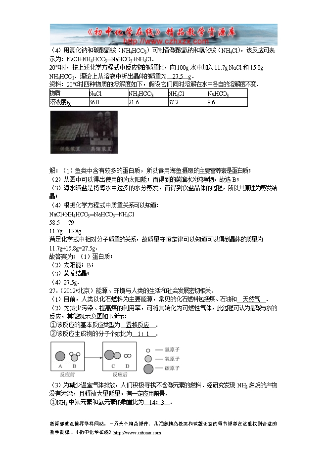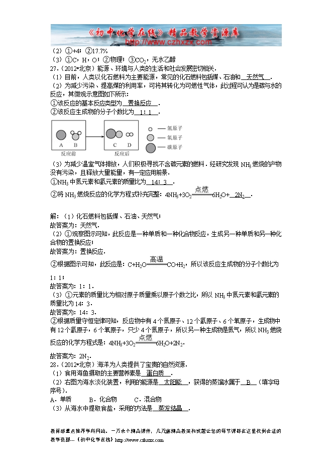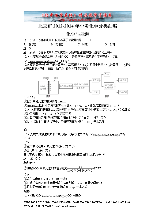 北京市2012-2014年中考化学分类汇编:16化学与能源