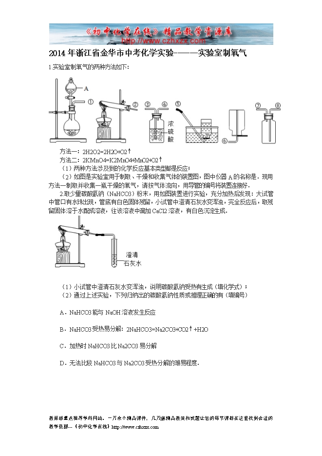 2014年浙江省金华市中考化学实验—实验室制氧气