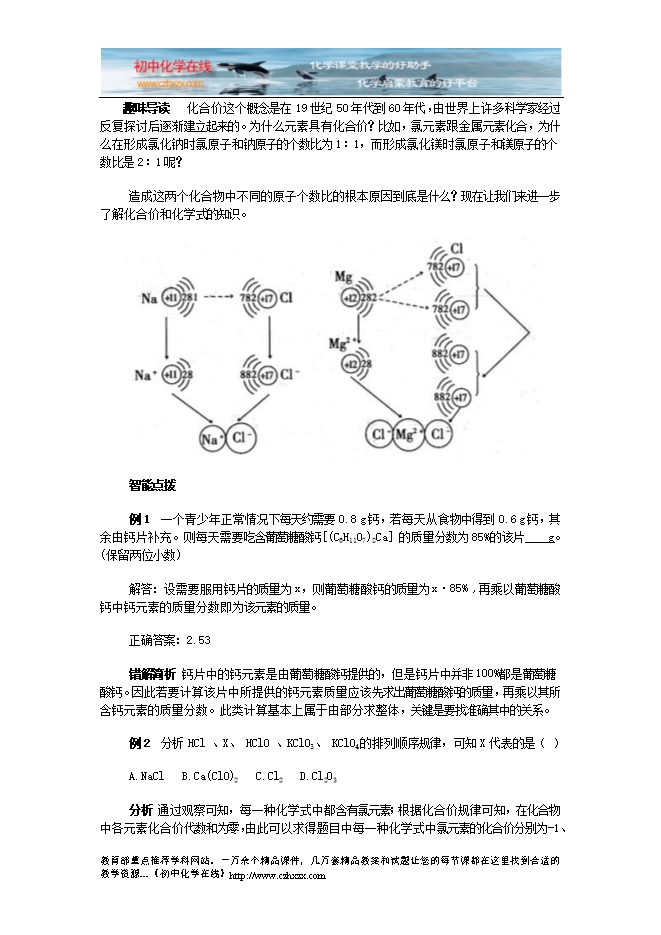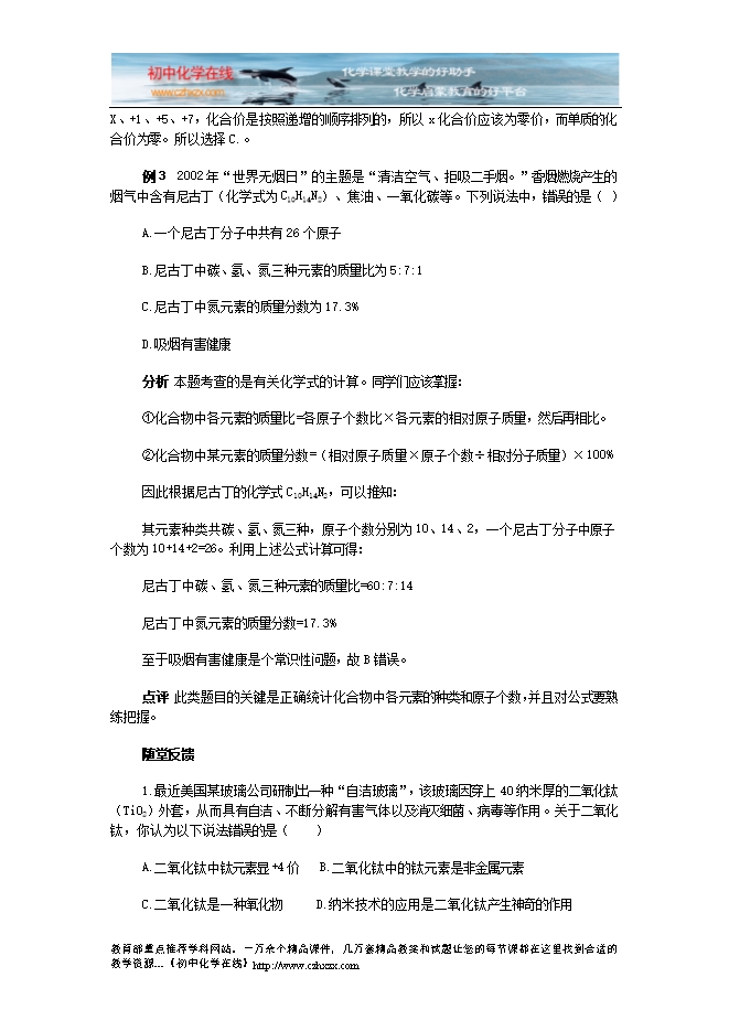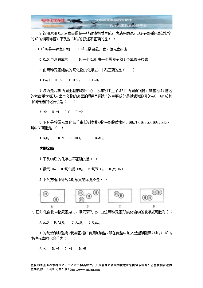 人教版《第四单元课题4 化学式与化合价》检测题及答案分析