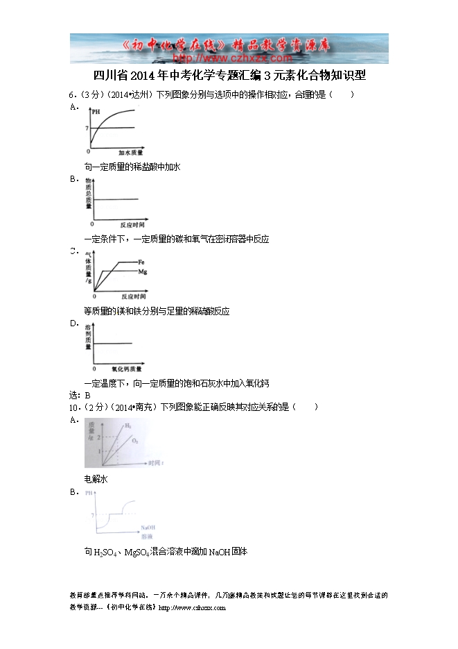 四川省2014年中考化学专题汇编:3元素化合物知识型