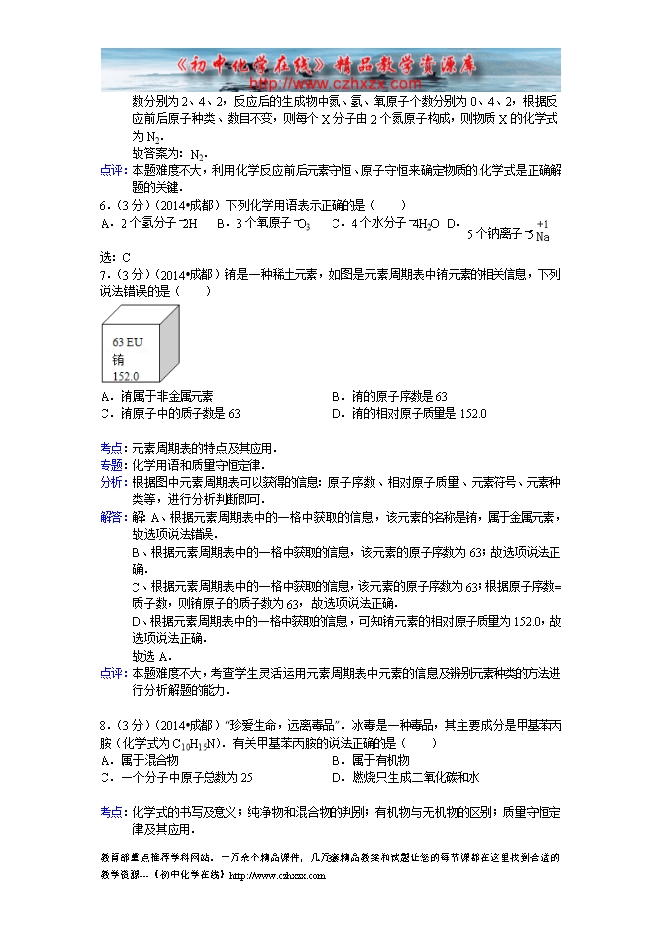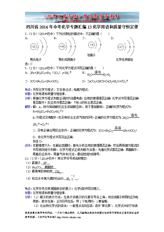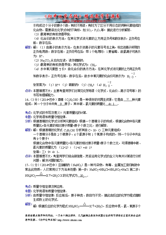 四川省2014年中考化学专题汇编:13化学用语和质量守恒定律