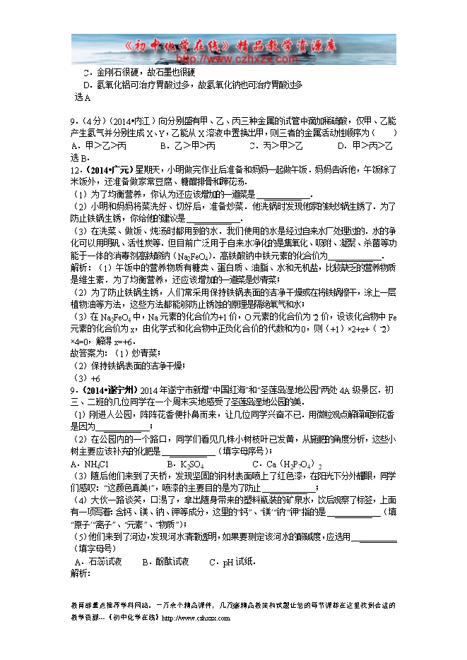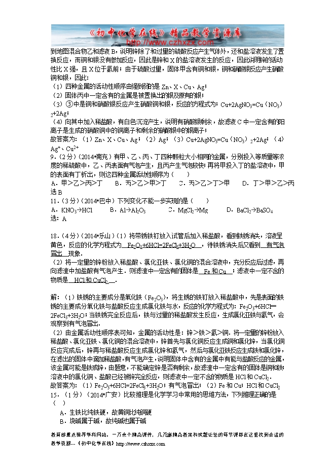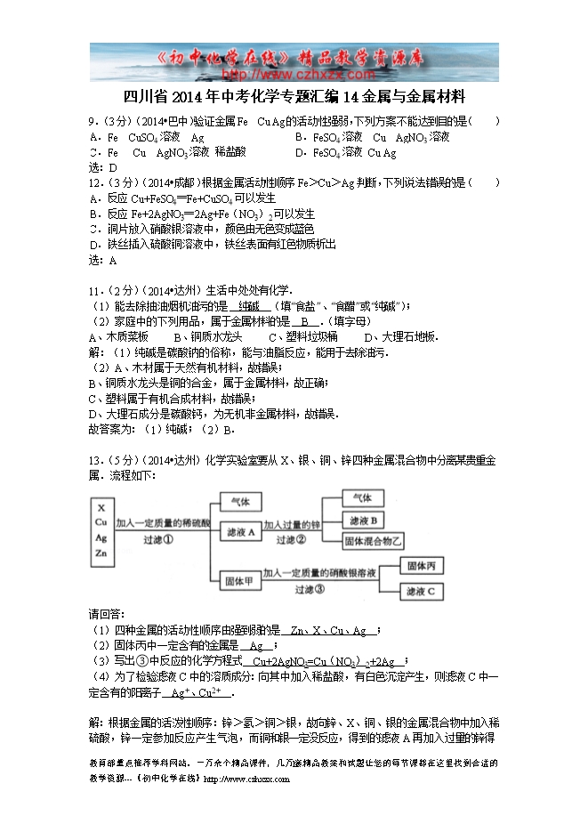 四川省2014年中考化学专题汇编:14金属与金属材料