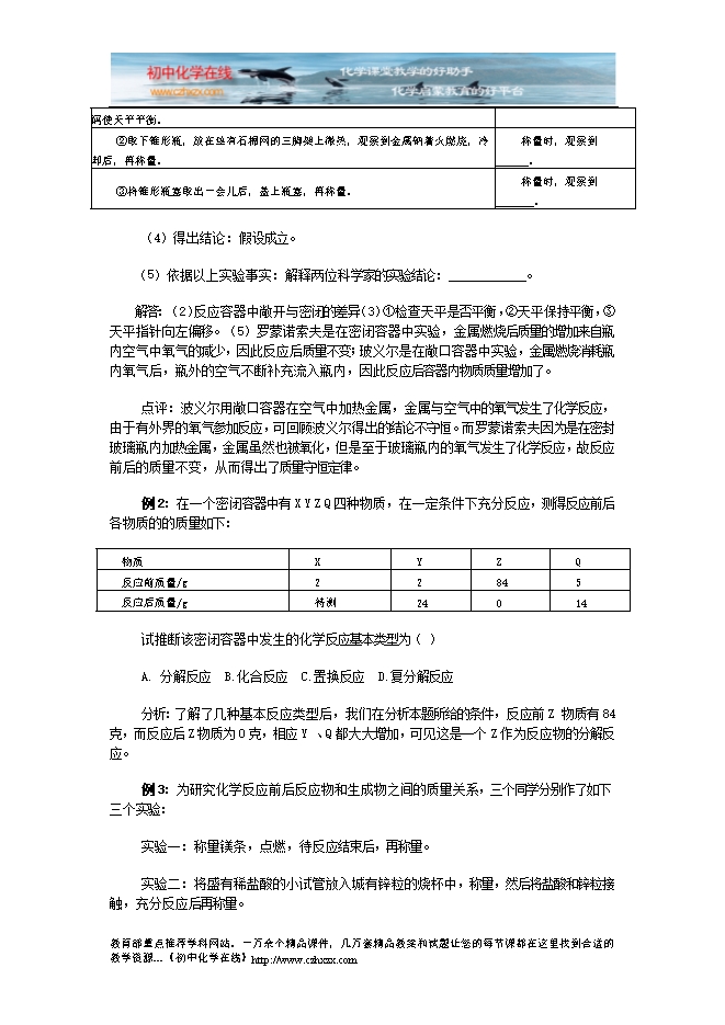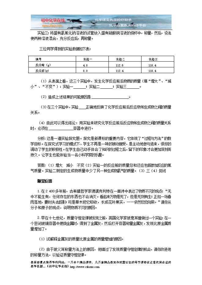 人教版《第五单元课题1 质量守恒定律》检测题及答案分析