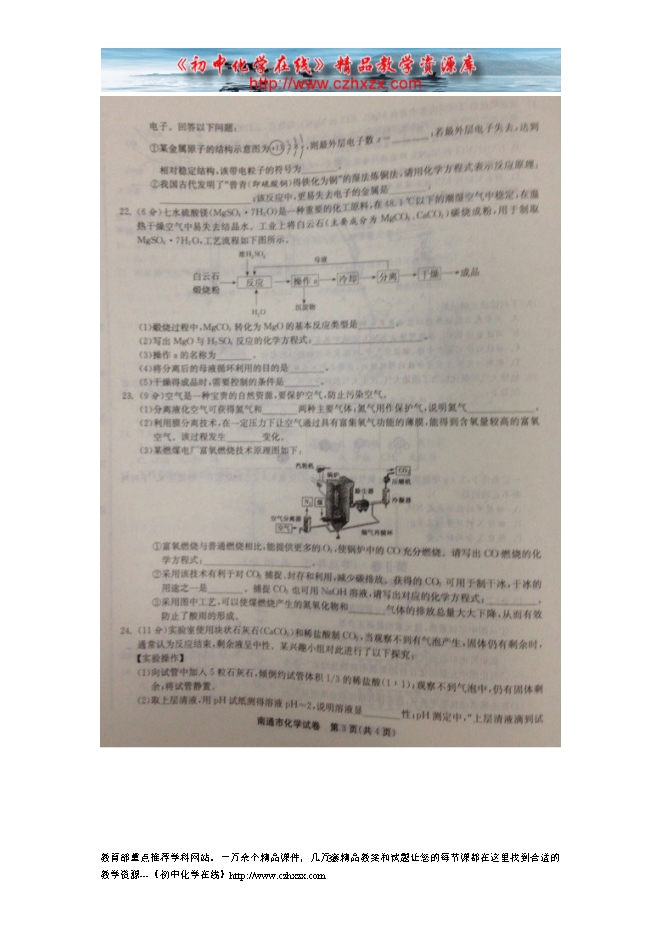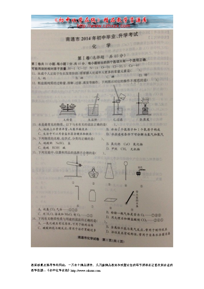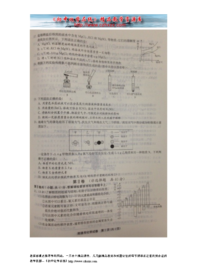 2014年江苏省南通市中考化学试题及答案(扫描版)