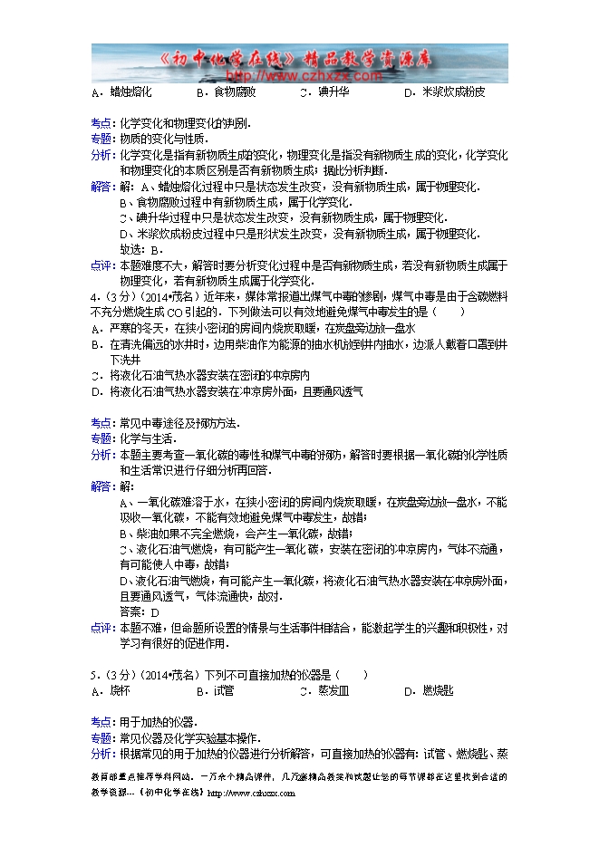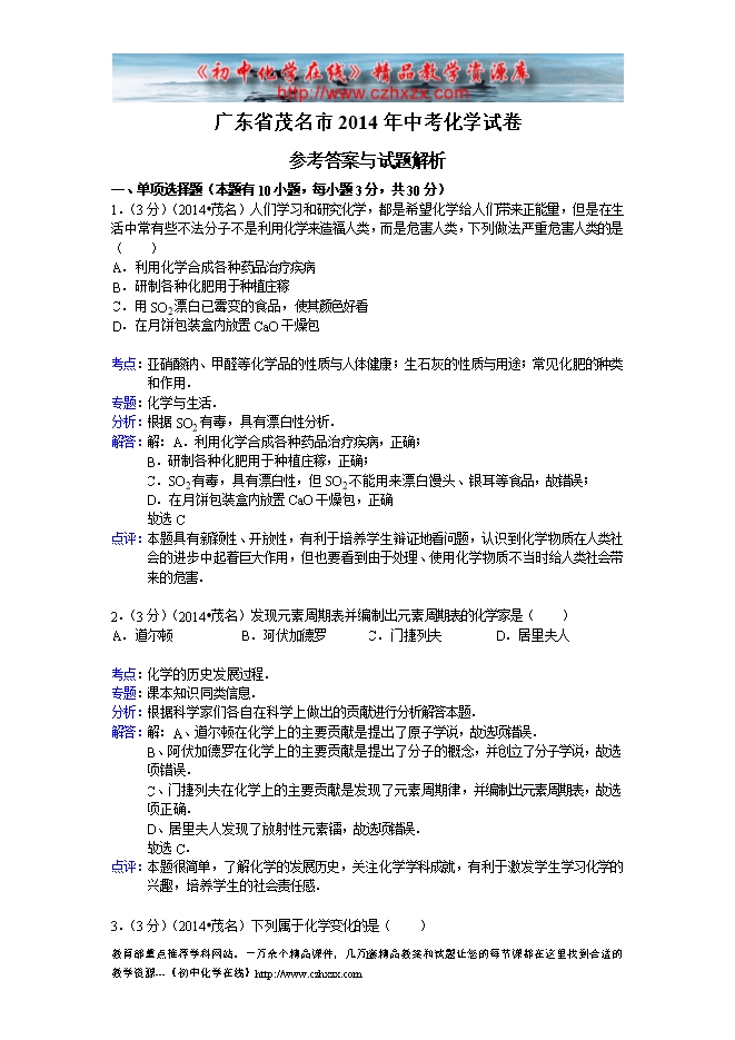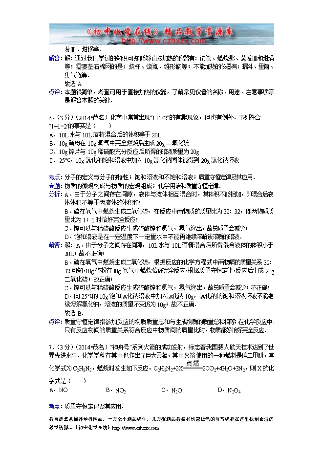 2014年广东省茂名市中考化学试题及答案(word版,含解析)