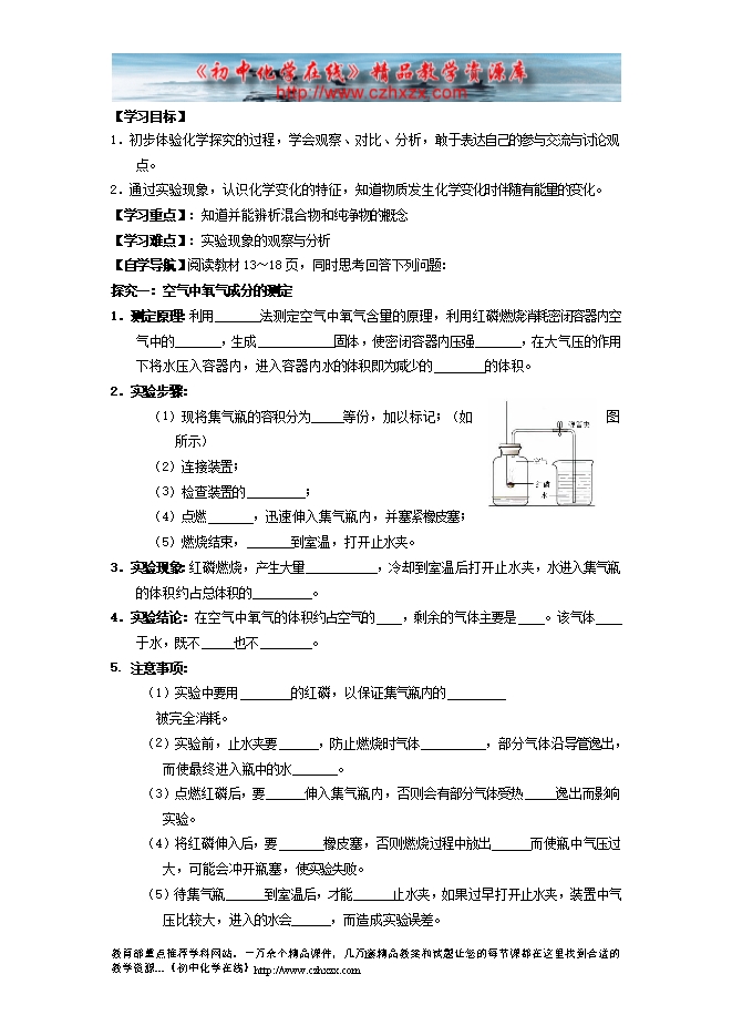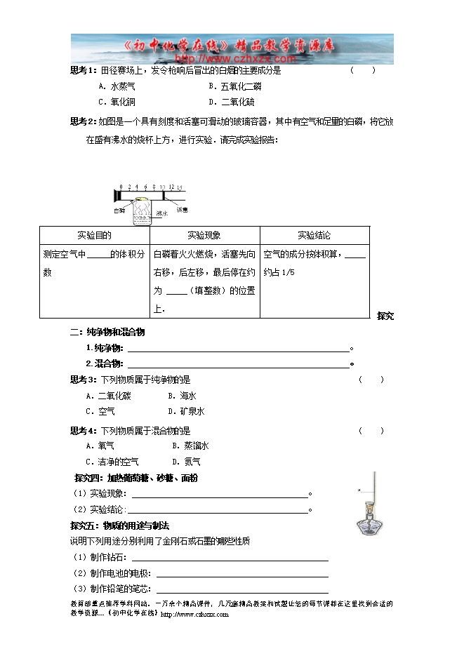 辽宁省东北育才中学2015届沪教版初中化学导学案《1.2化学研究些什么》(有答案)第二课时