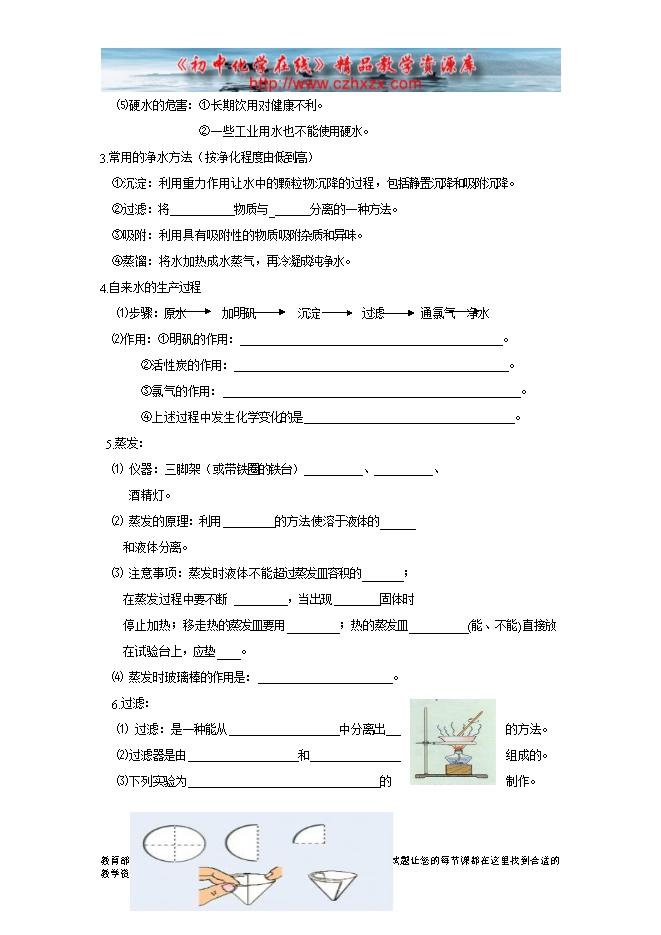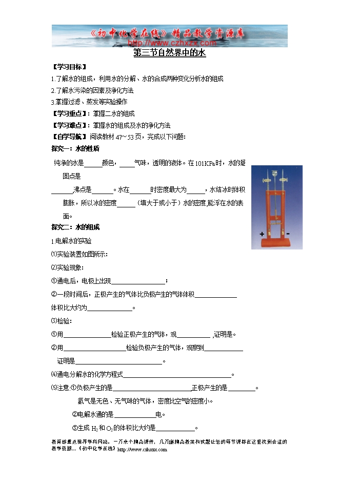 辽宁省东北育才中学2015届沪教版初中化学导学案《2.3自然界的水》(有答案)