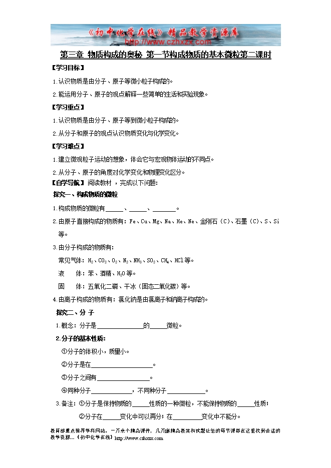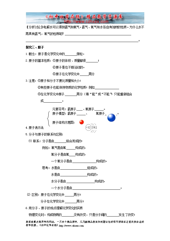 辽宁省东北育才中学2015届沪教版初中化学导学案《3.1构成物质的基本微粒》(有答案)第二课时