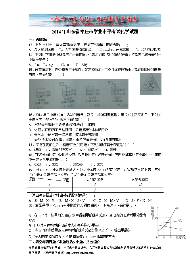 2014年山东省枣庄市中考化学试题及答案(word版)
