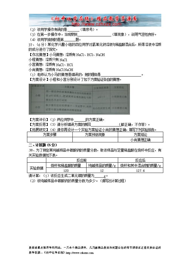 - 上一份试卷:2014年山东省青岛市中考化学试题及答案(word版)