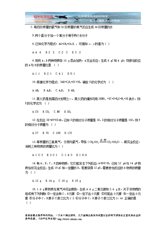 人教版《第五单元 化学方程式》检测题