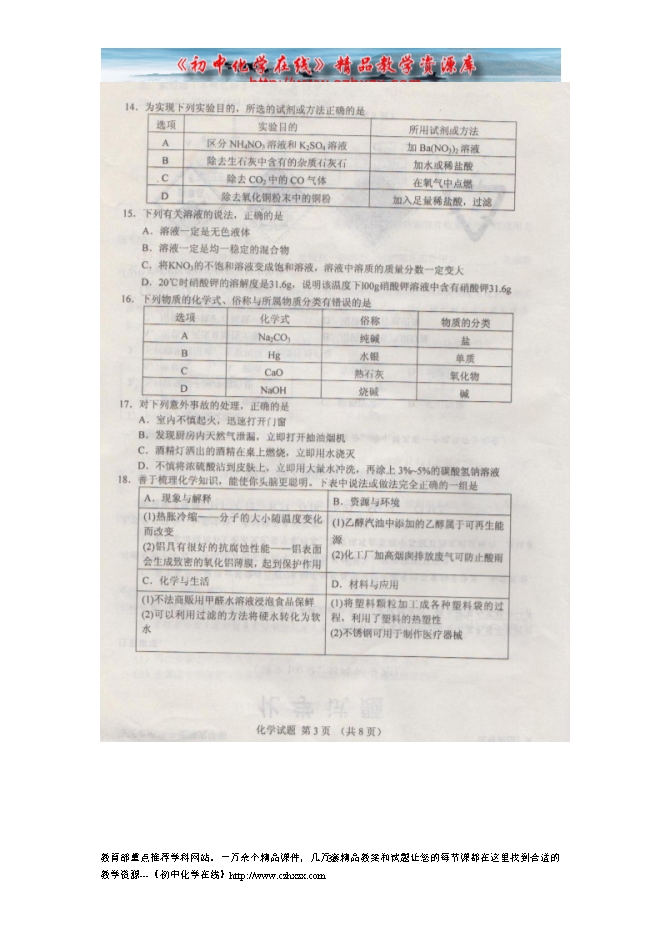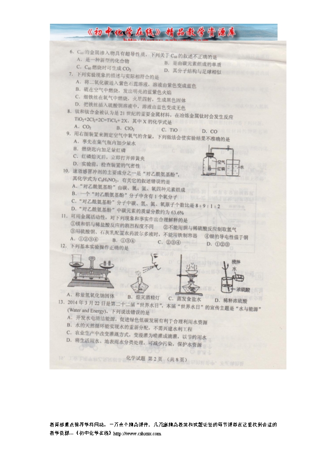 所属专辑: 《2014年各省市中考化学真题》专辑