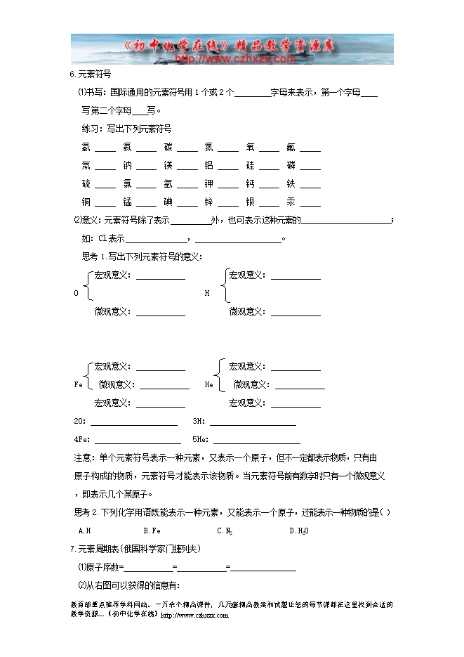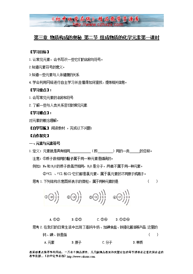 辽宁省东北育才中学2015届沪教版初中化学导学案《3.2组成物质的化学元素》(有答案)第一课时