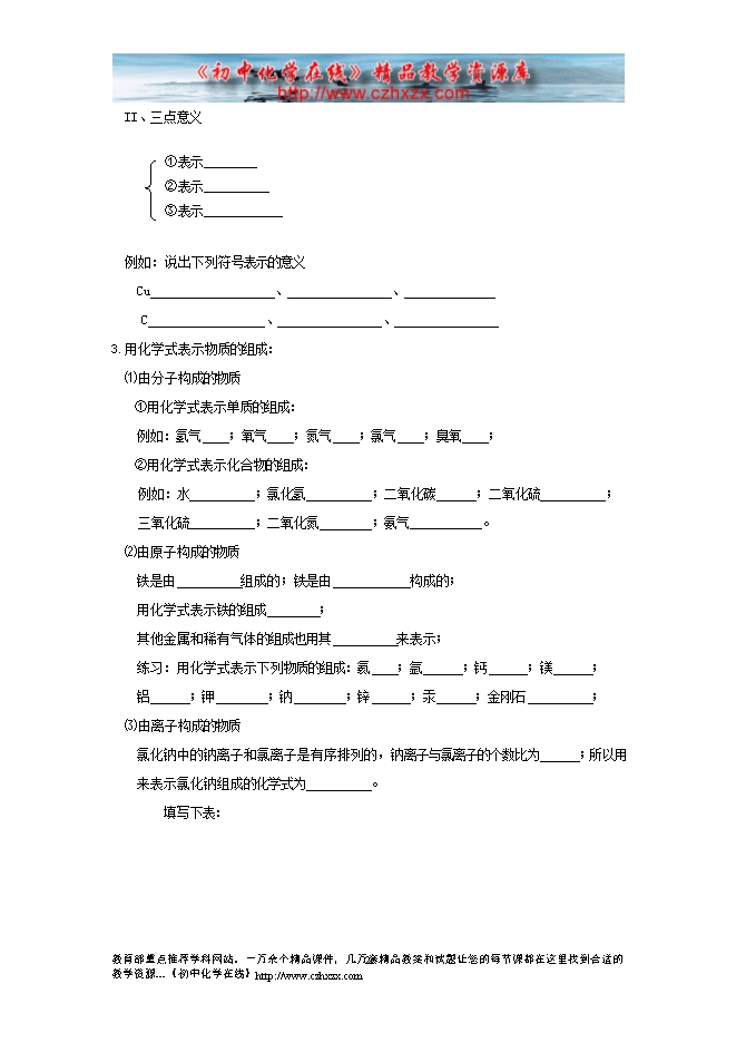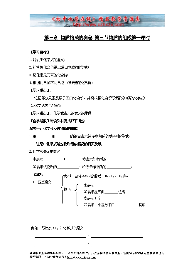 辽宁省东北育才中学2015届沪教版初中化学导学案《3.3物质的组成》(有答案)第一课时