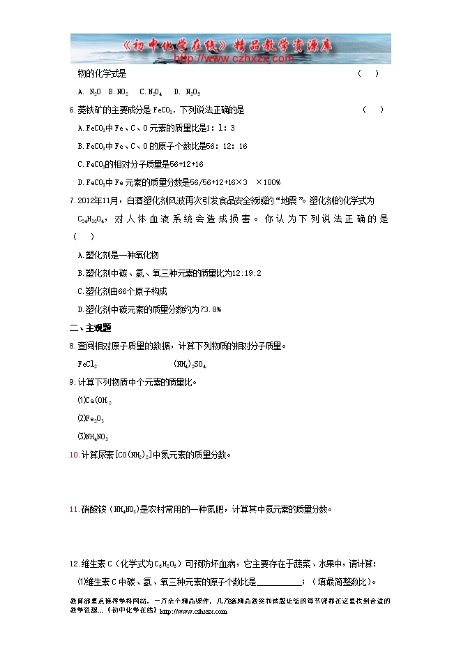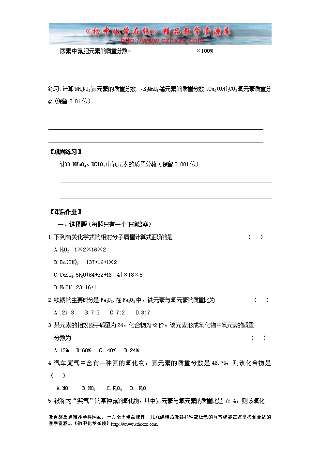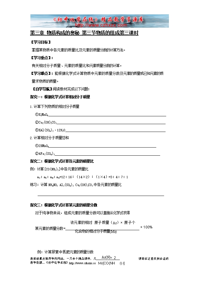 辽宁省东北育才中学2015届沪教版初中化学导学案《3.3物质的组成》(有答案)第三课时