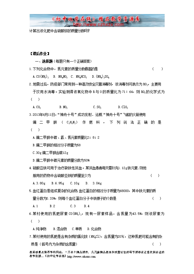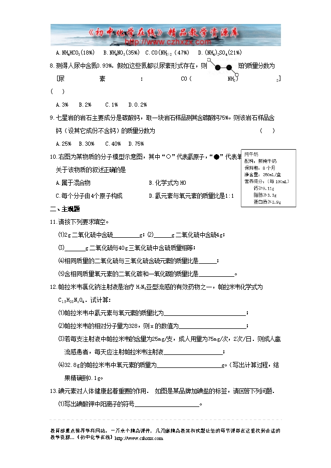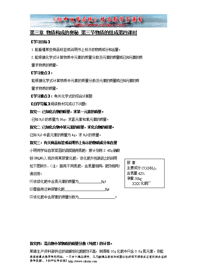 辽宁省东北育才中学2015届沪教版初中化学导学案《3.3物质的组成》(有答案)第四课时