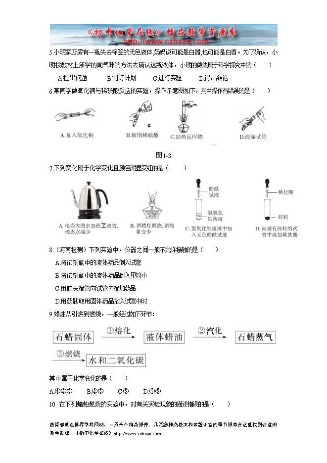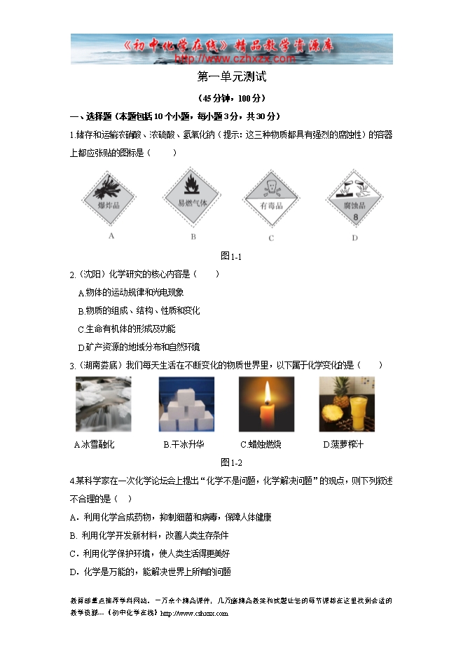 2014-2015鲁教版初中化学《第一单元 步入化学殿堂 》测试题(有答案及解析)