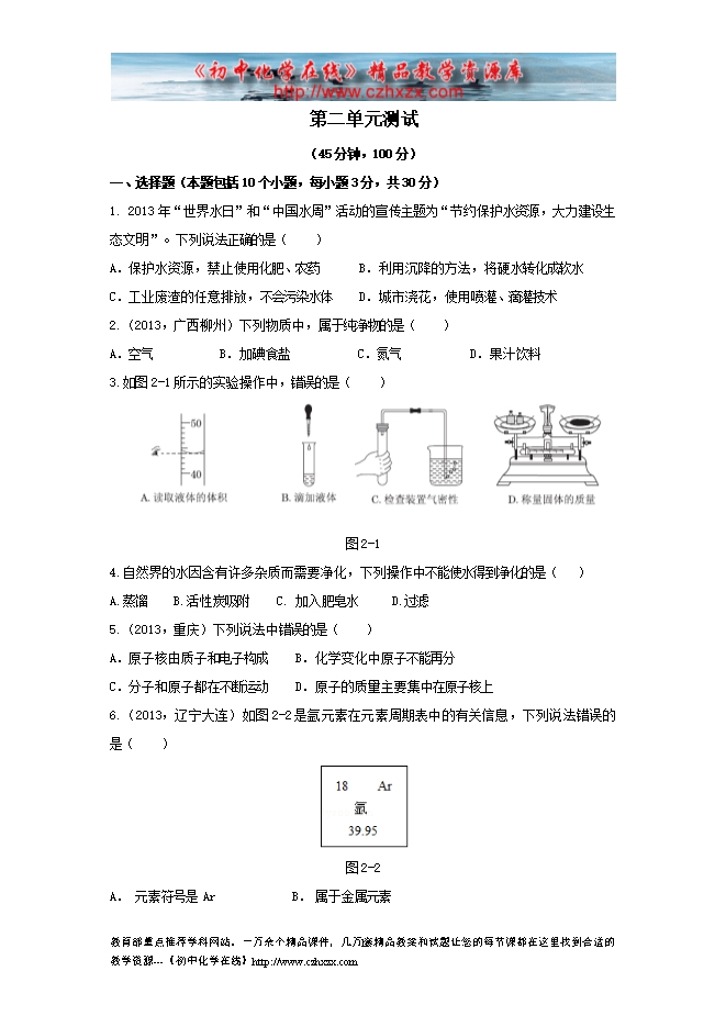 2014-2015鲁教版初中化学《第二单元 探秘水世界 》测试题(有答案及解析)