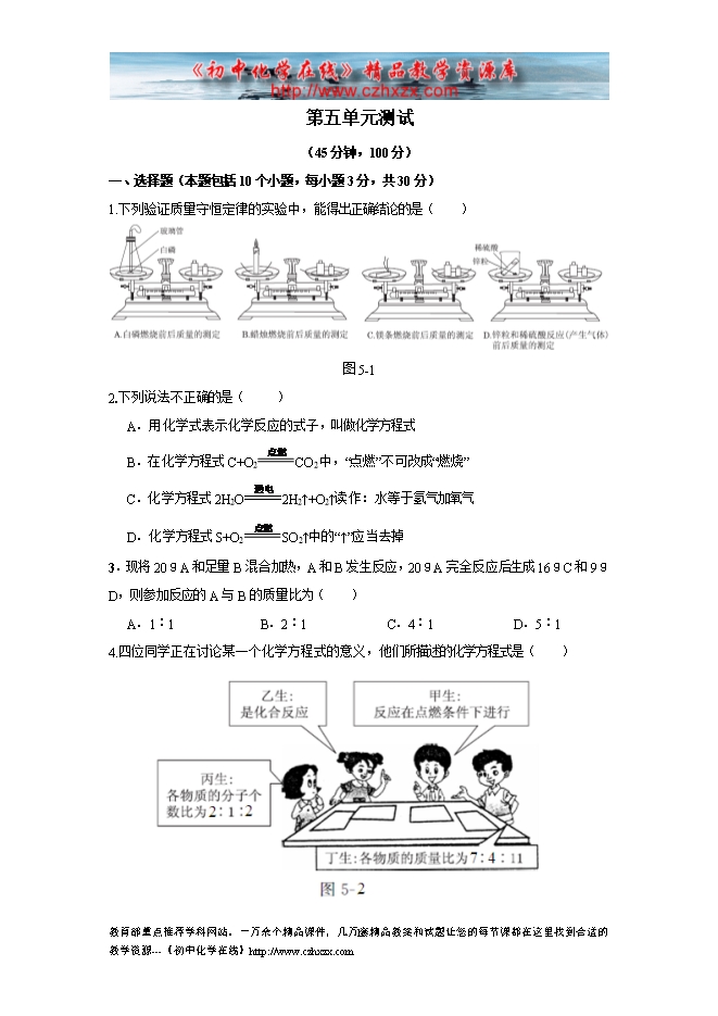 2014-2015鲁教版初中化学《第五单元 定量研究化学反应》测试题(有答案及解析)