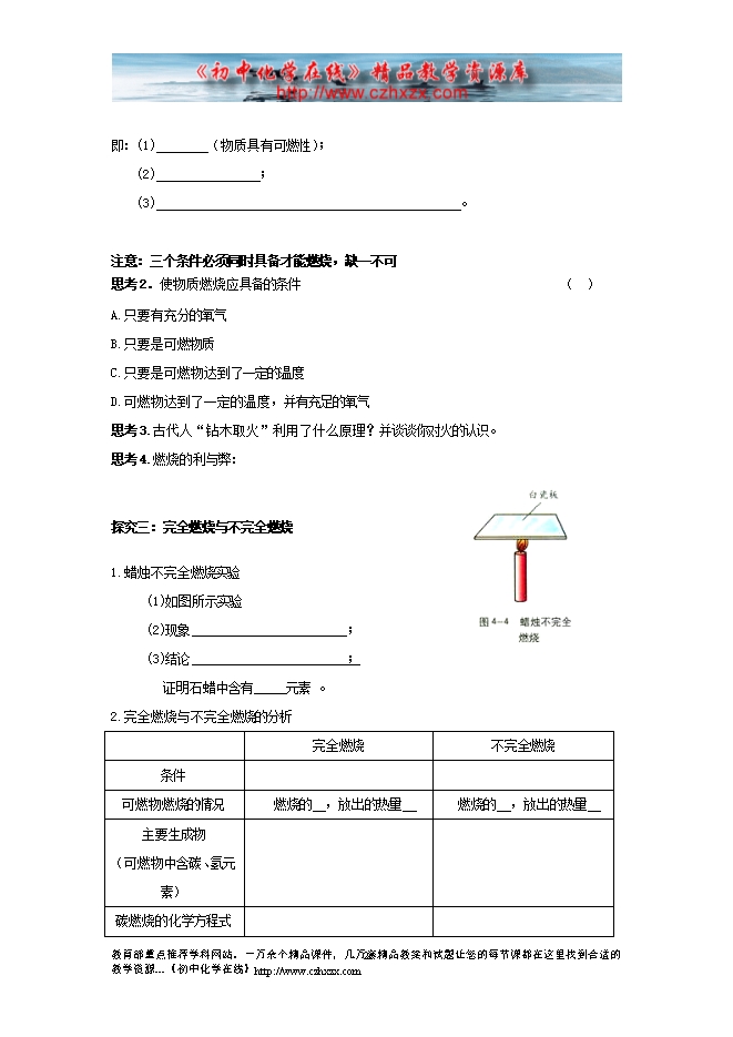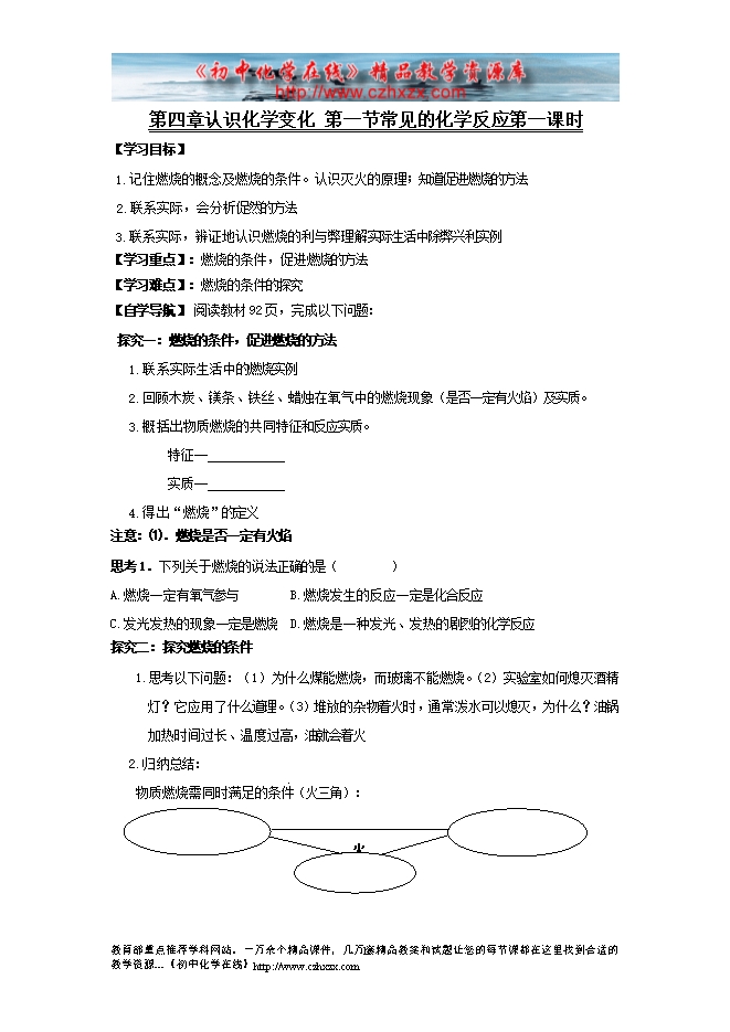辽宁省东北育才中学2015届沪教版初中化学导学案《4.1常见的化学反应》(有答案)第一课时