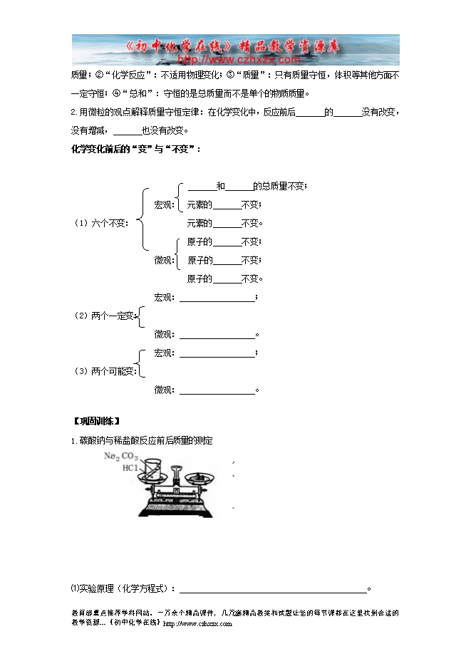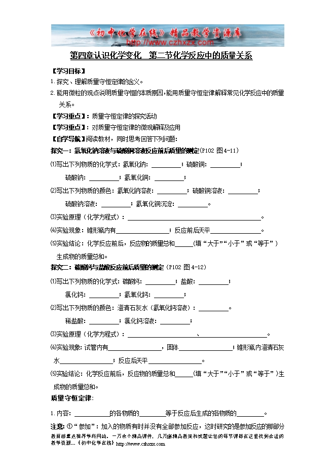 辽宁省东北育才中学2015届沪教版初中化学导学案《4.2化学反应中的质量关系》(有答案)