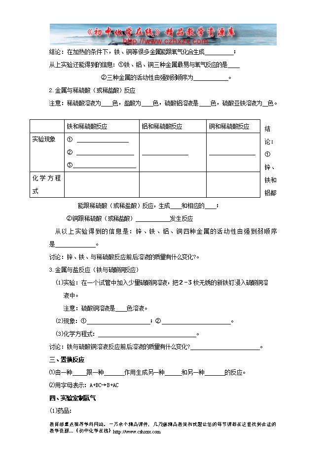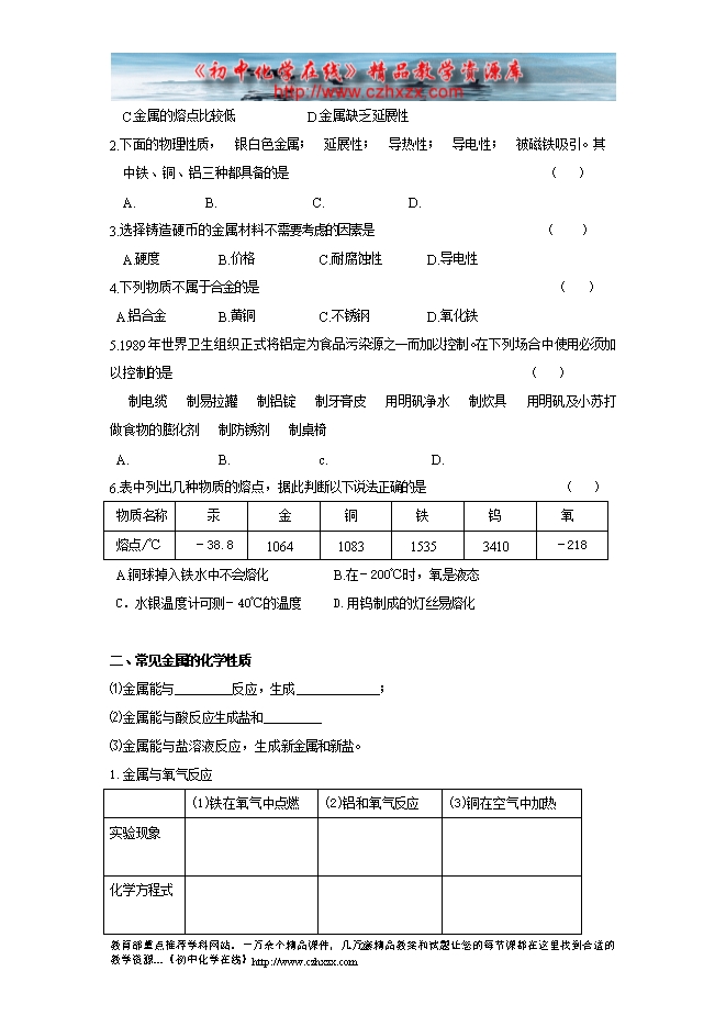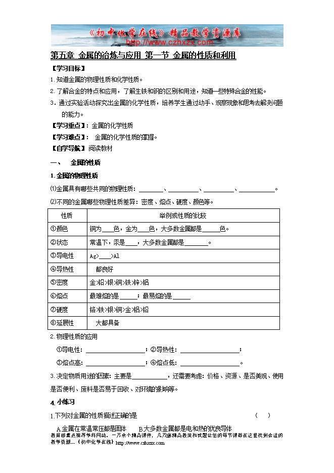 辽宁省东北育才中学2015届沪教版初中化学导学案《5.1金属的性质和利用》(有答案)