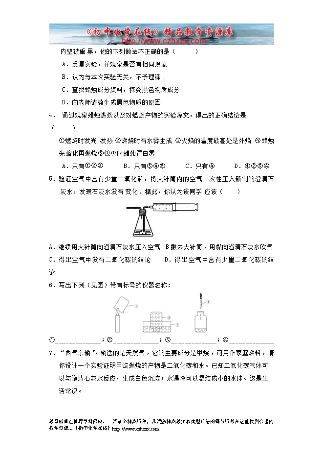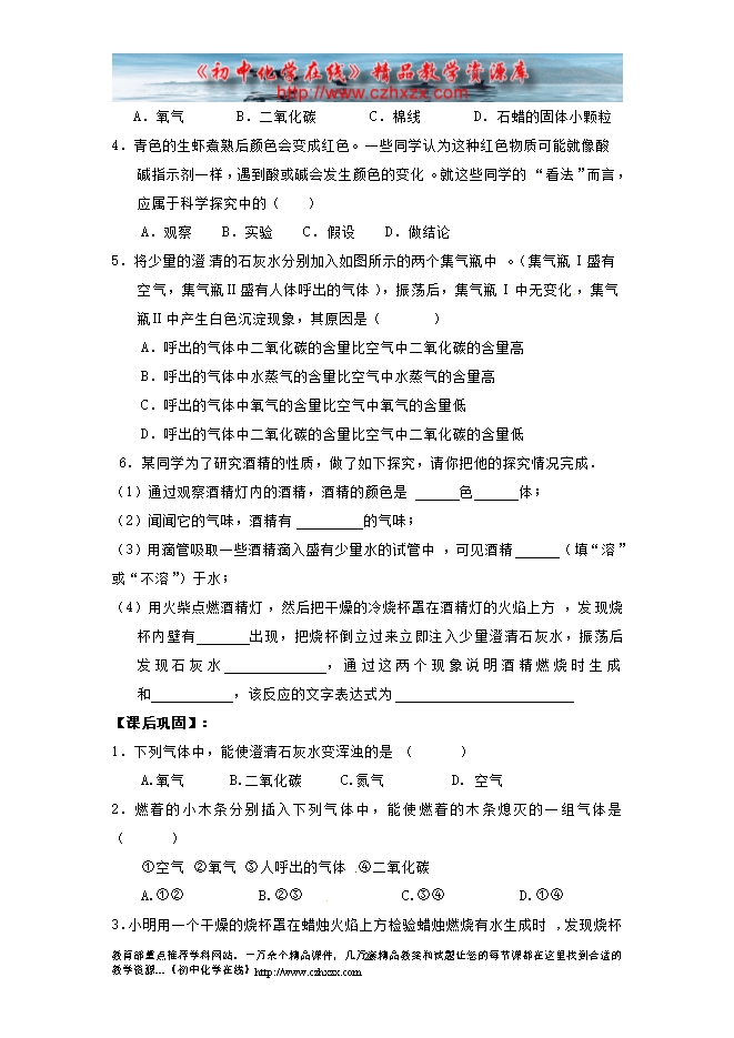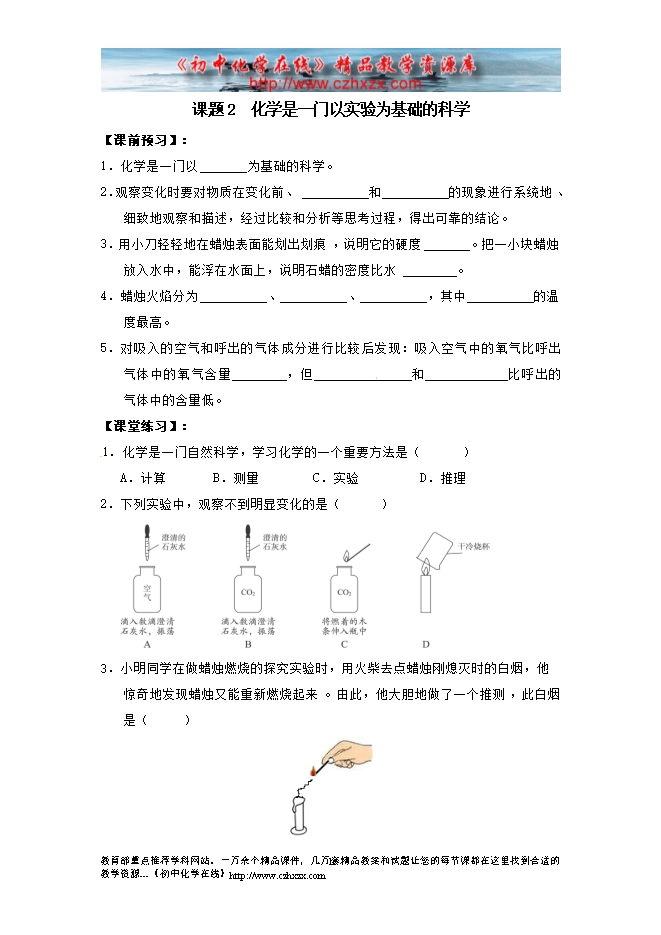 2014-2015人教版初中化学《第一单元课题2 化学是一门以实验为基础的科学》一课三练((课前预习+课堂练习+课后巩固,含答案)