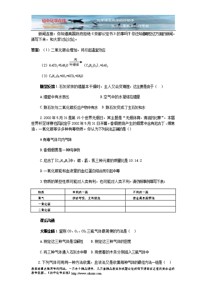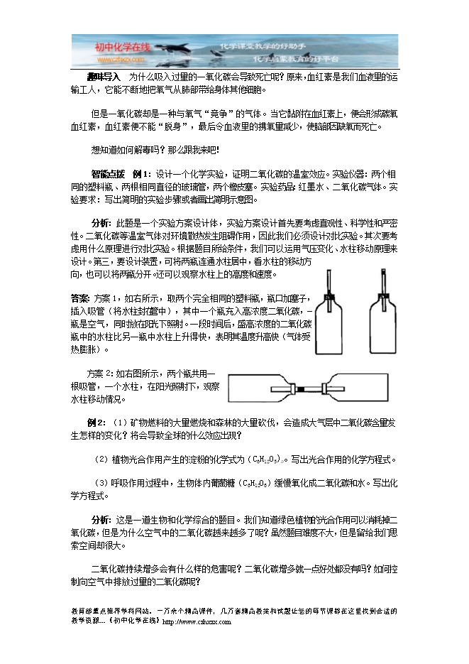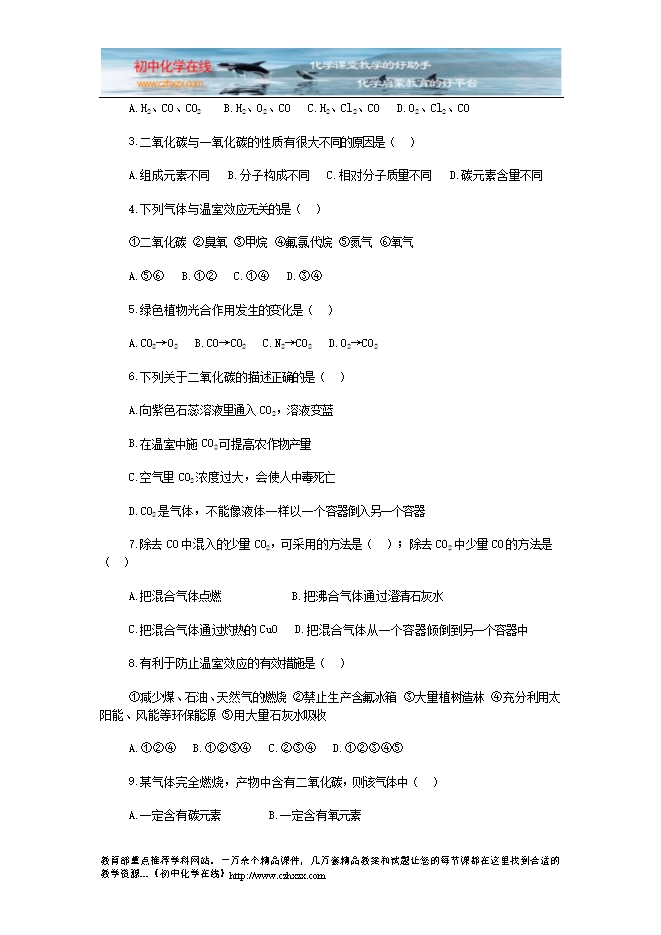 人教版《第六单元课题3 二氧化碳和一氧化碳》检测题及答案分析