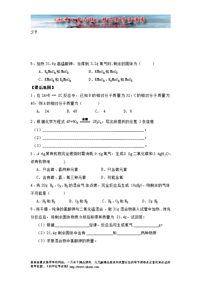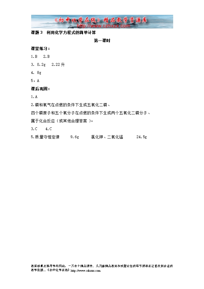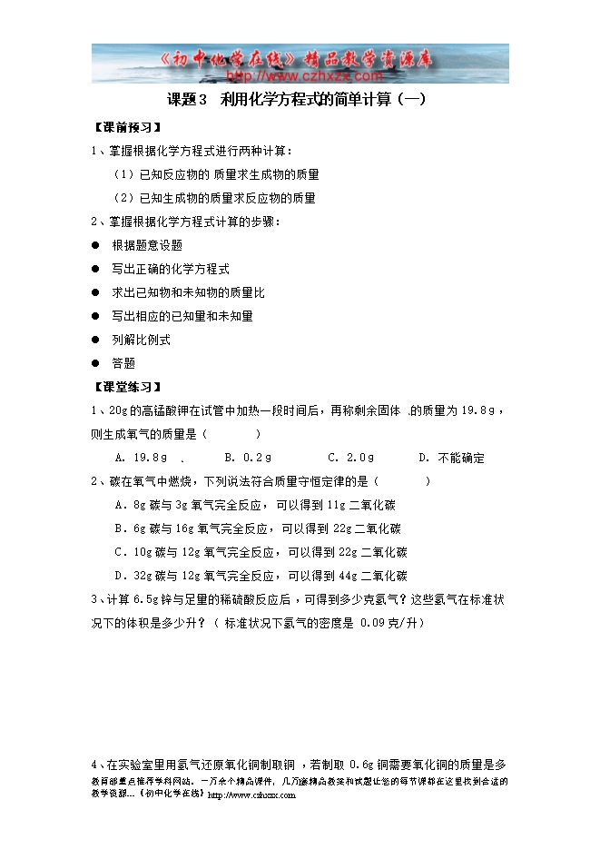 2014-2015人教版初中化学《第五单元课题3 利用化学方程式的简单计算》一课三练(课前预习+课堂练习+课后巩固,含答案)