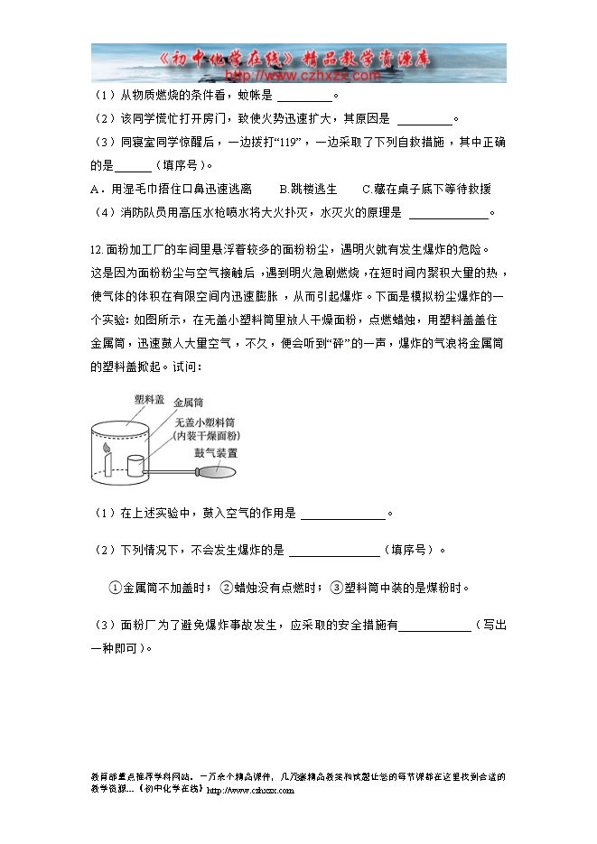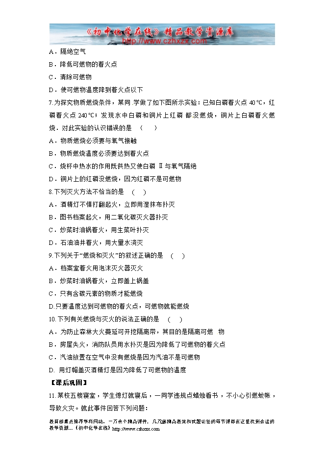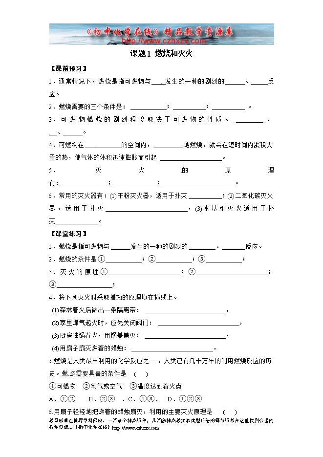 2014-2015人教版初中化学《第七单元课题1 燃烧和灭火》一课三练(课前预习+课堂练习+课后巩固,含答案)