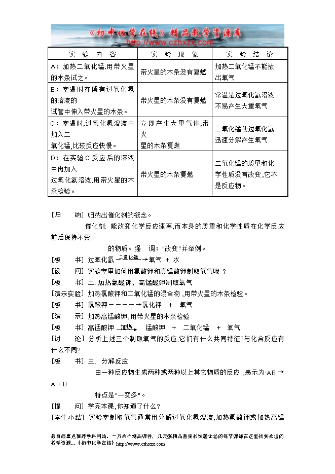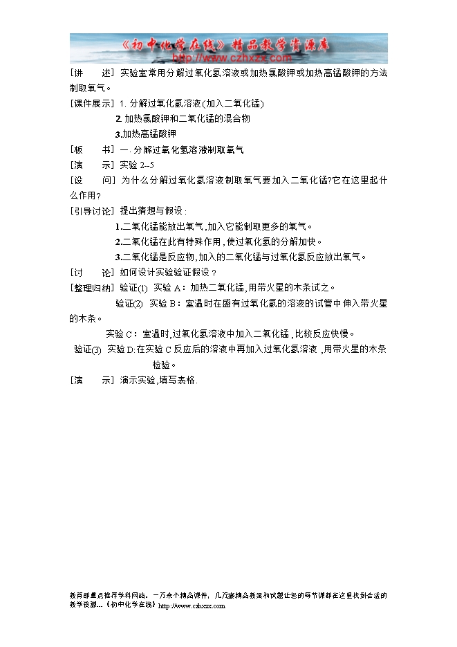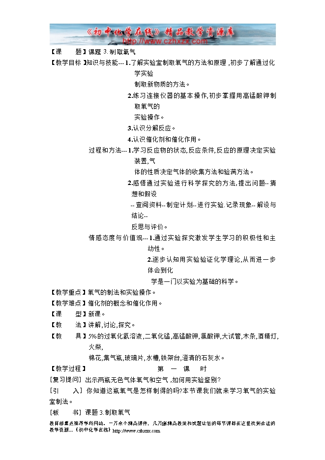 2014-2015人教版初中化学《第二单元课题3.制取氧气》教学设计