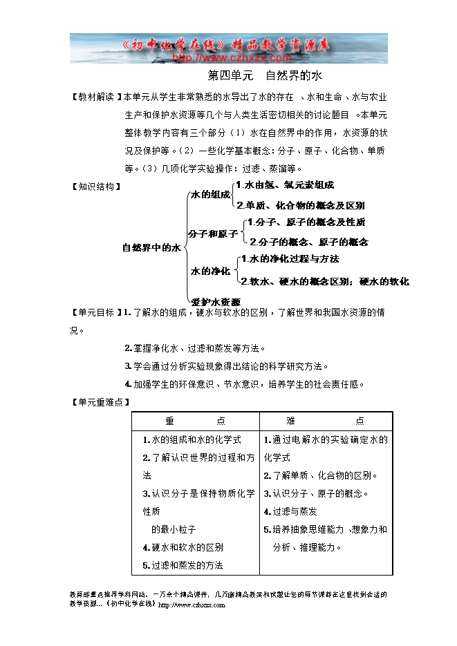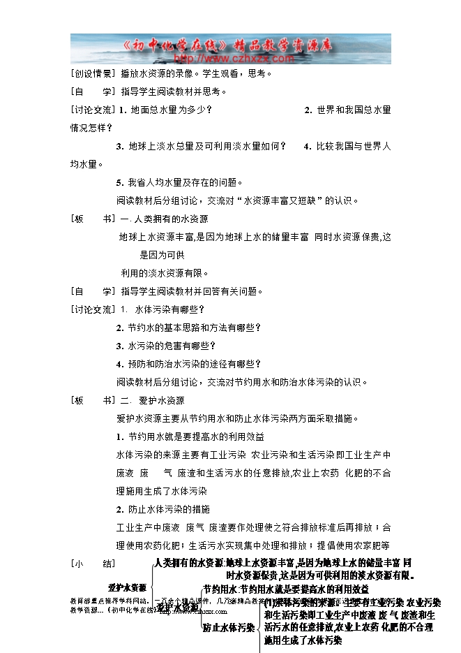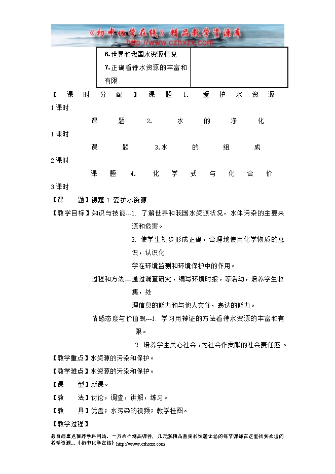 2014-2015人教版初中化学《第四单元 课题1.爱护水资源》教学设计