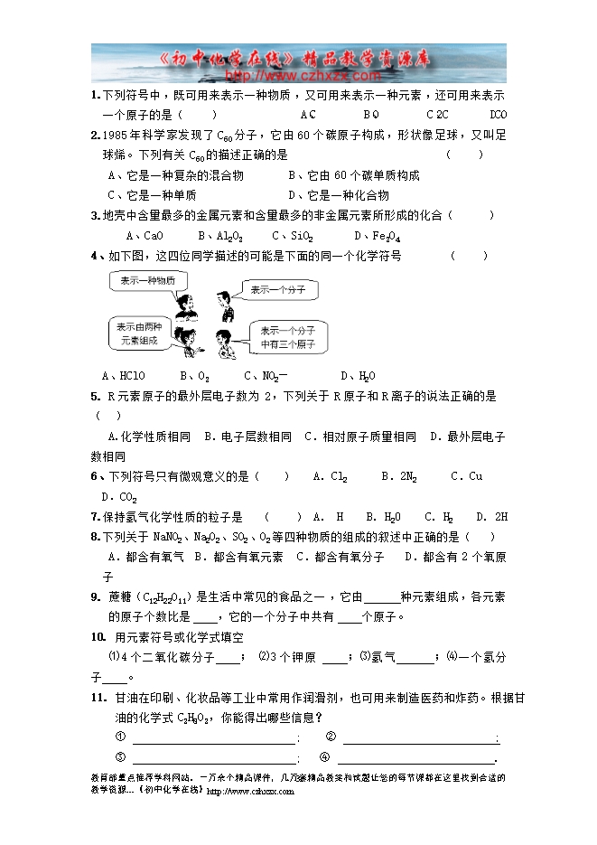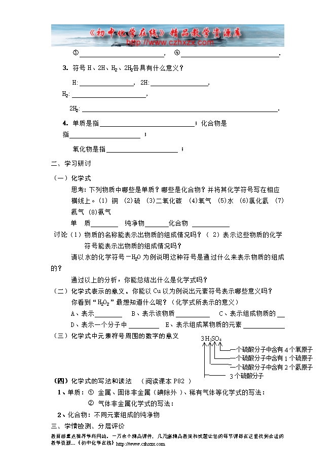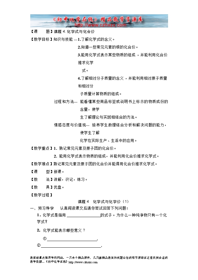 2014-2015人教版初中化学《第四单元课题4.化学式与化合价》教学设计