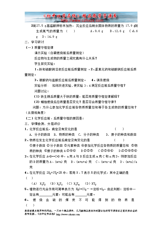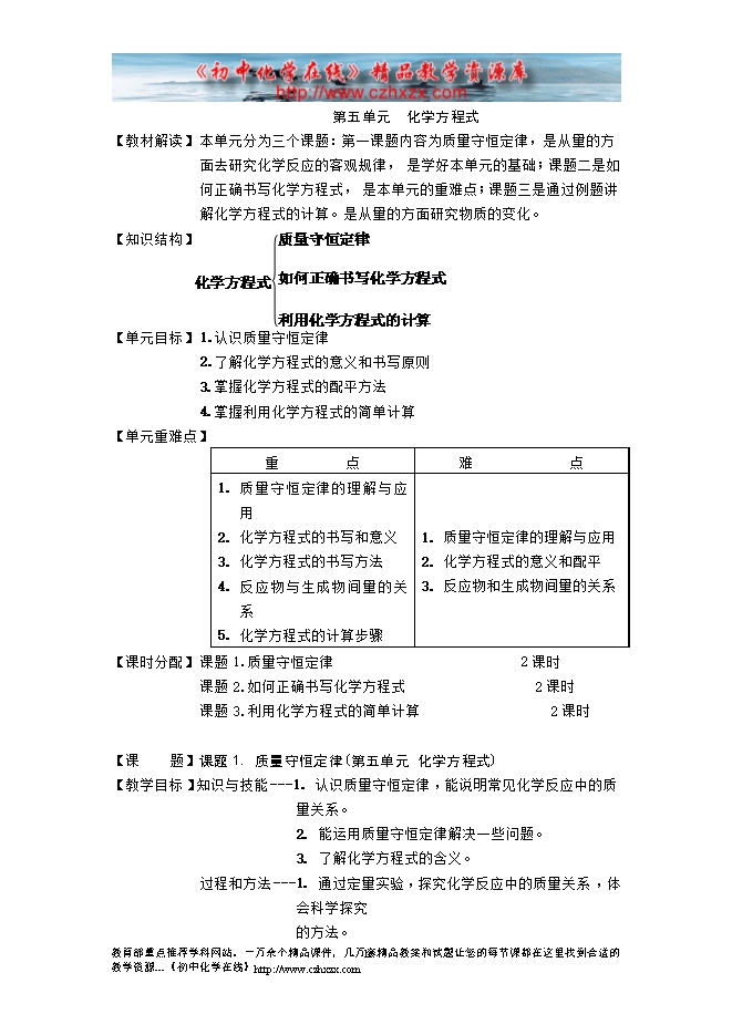 2014-2015人教版初中化学《第五单元课 题1. 质量守恒定律》教学设计