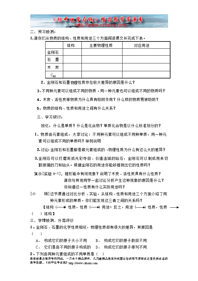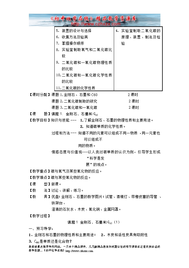 2014-2015人教版初中化学《第六单元课题1 金刚石、石墨和C60》教学设计