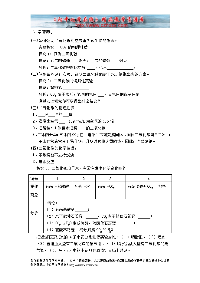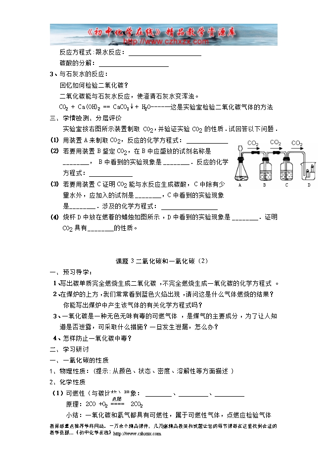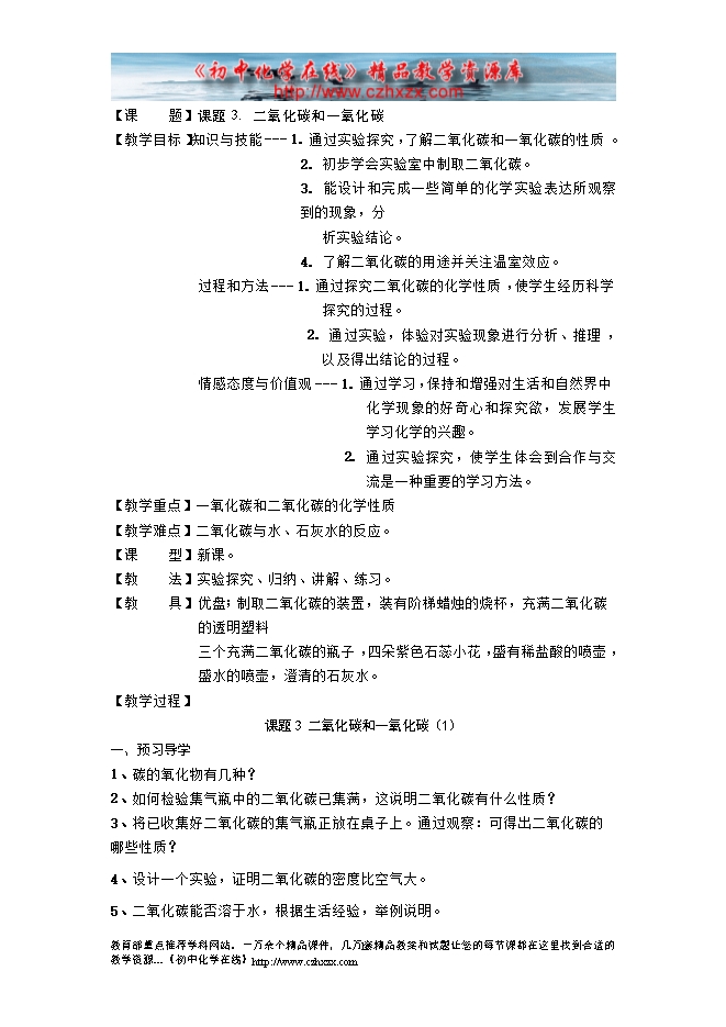 2014-2015人教版初中化学《第六单元课题3. 二氧化碳和一氧化碳》教学设计