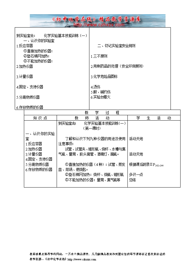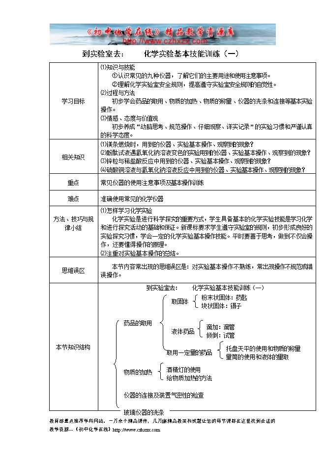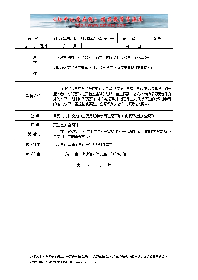 2014-2015新鲁教版初中化学《第一单元到实验室去:化学实验基本技能训练(一)》教学设计