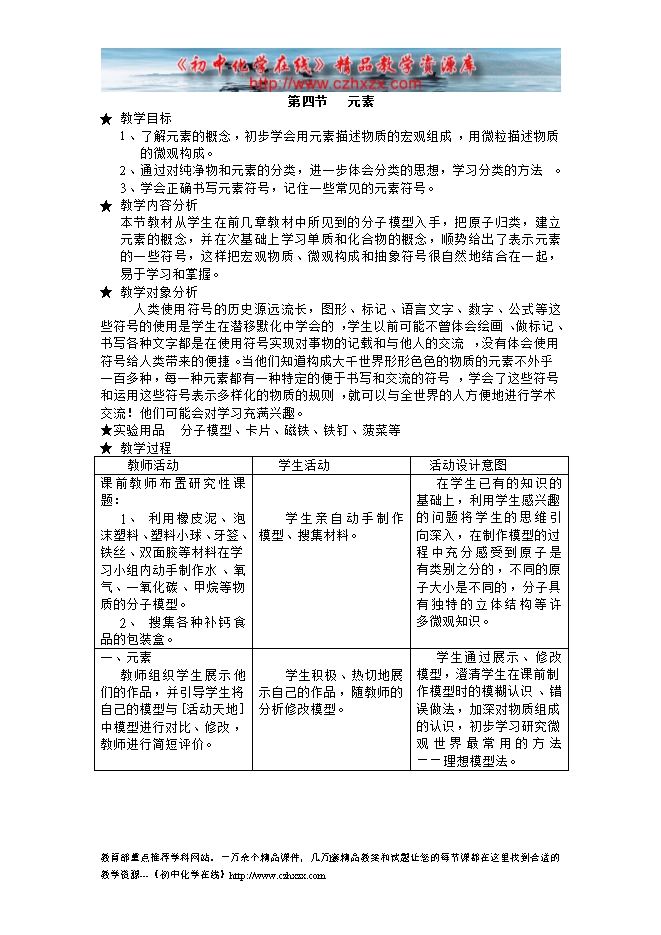 2014-2015新鲁教版初中化学《第二单元第四节 元素》教学设计