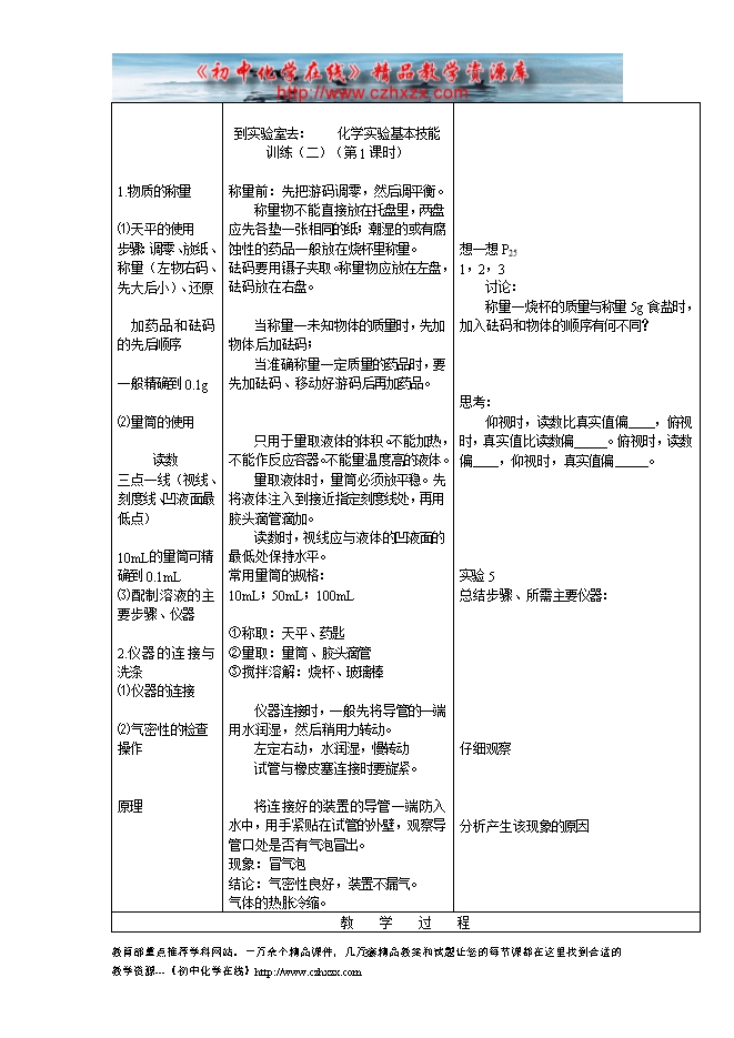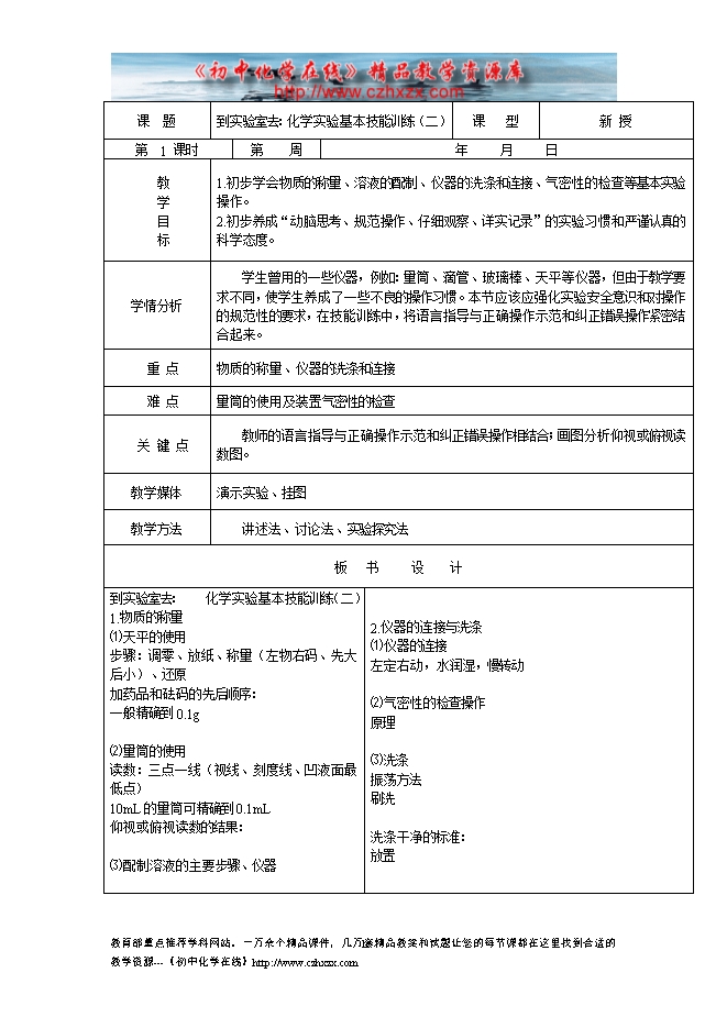 2014-2015新鲁教版初中化学《第二单元到实验室去:化学实验基本技能训练(二)》教学设计