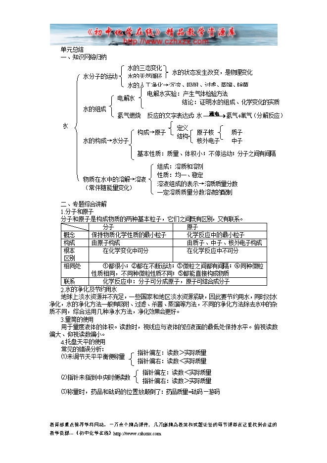 2014-2015新鲁教版初中化学《第二单元 探秘水世界》复习课教学设计
